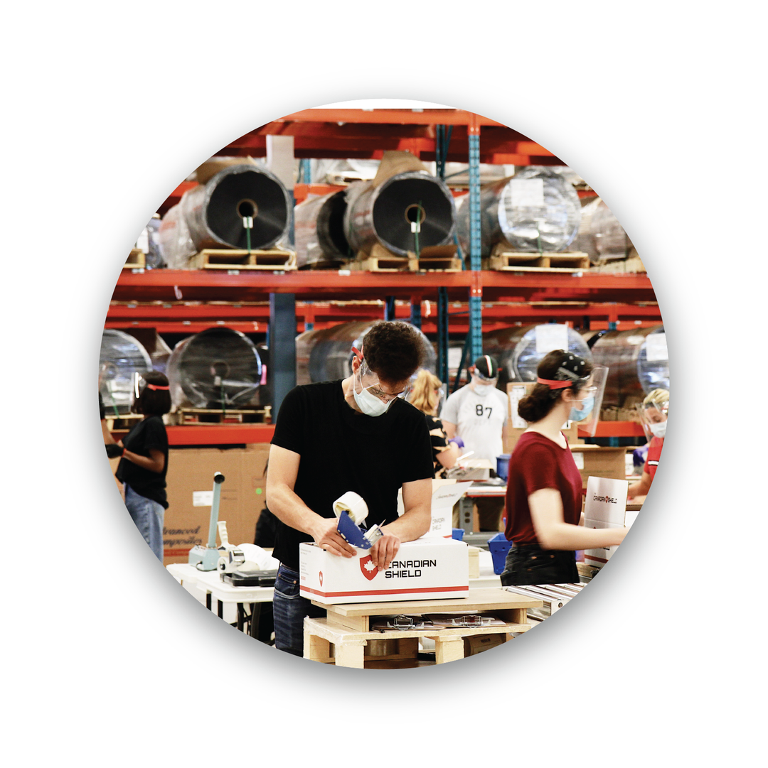 Just one month after The Canadian Shield launched, the company was awarded a federal contract from the Government of Canada for 10 million face shields. Operations scaled quickly, up to a team of over 330 workers at peak production. The contract was completed in June, 2020, ahead of schedule.